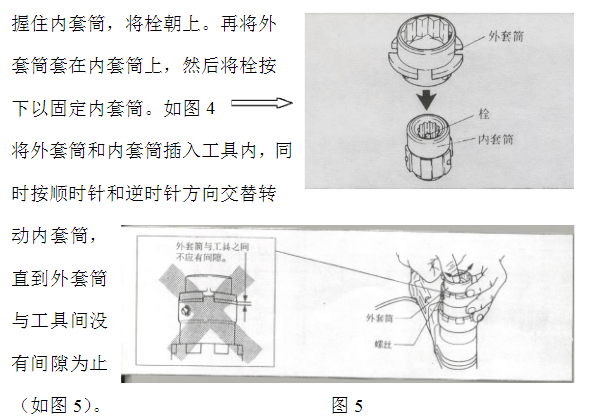 2.2 拆卸或按装内外套筒的方法。拆卸或按装内外套筒时,切不可让异物进到工具内。先拧松固定外套筒上的两个螺丝(如图1)